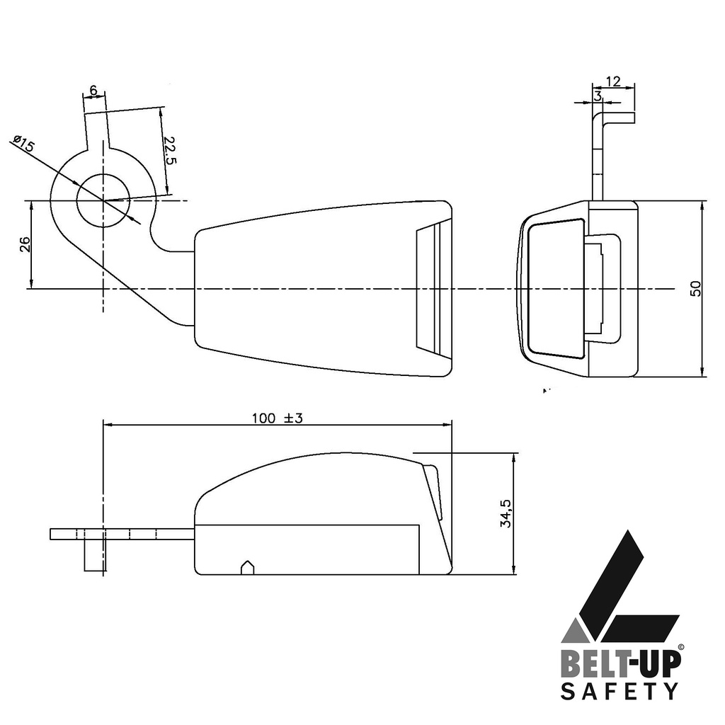 K12 seatbelt buckle assembly designed to fit ISRI (Isringhausen) seats in LDV minibus vehicles. The buckle is marked L for left hand