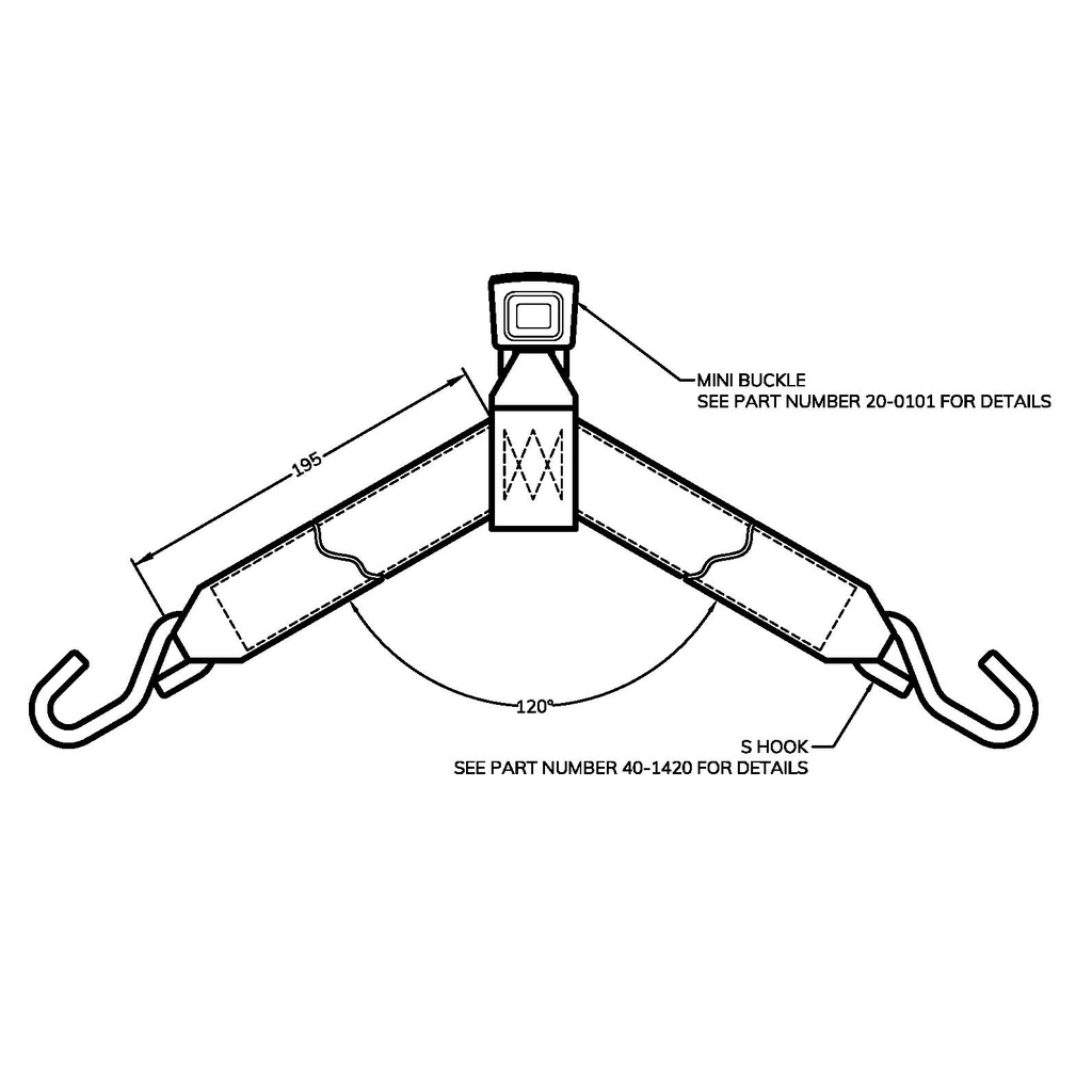 Wheelchair winch Y Strap with connection to wheelchair via 2 x S Hook. Connection to the winch strap is via a press button mini-buckle. This product is to be used to winch wheelchair into vehicle ONLY and is NOT to be used to restrain the Wheel Chair during transit. This product is manufactured in the UK.