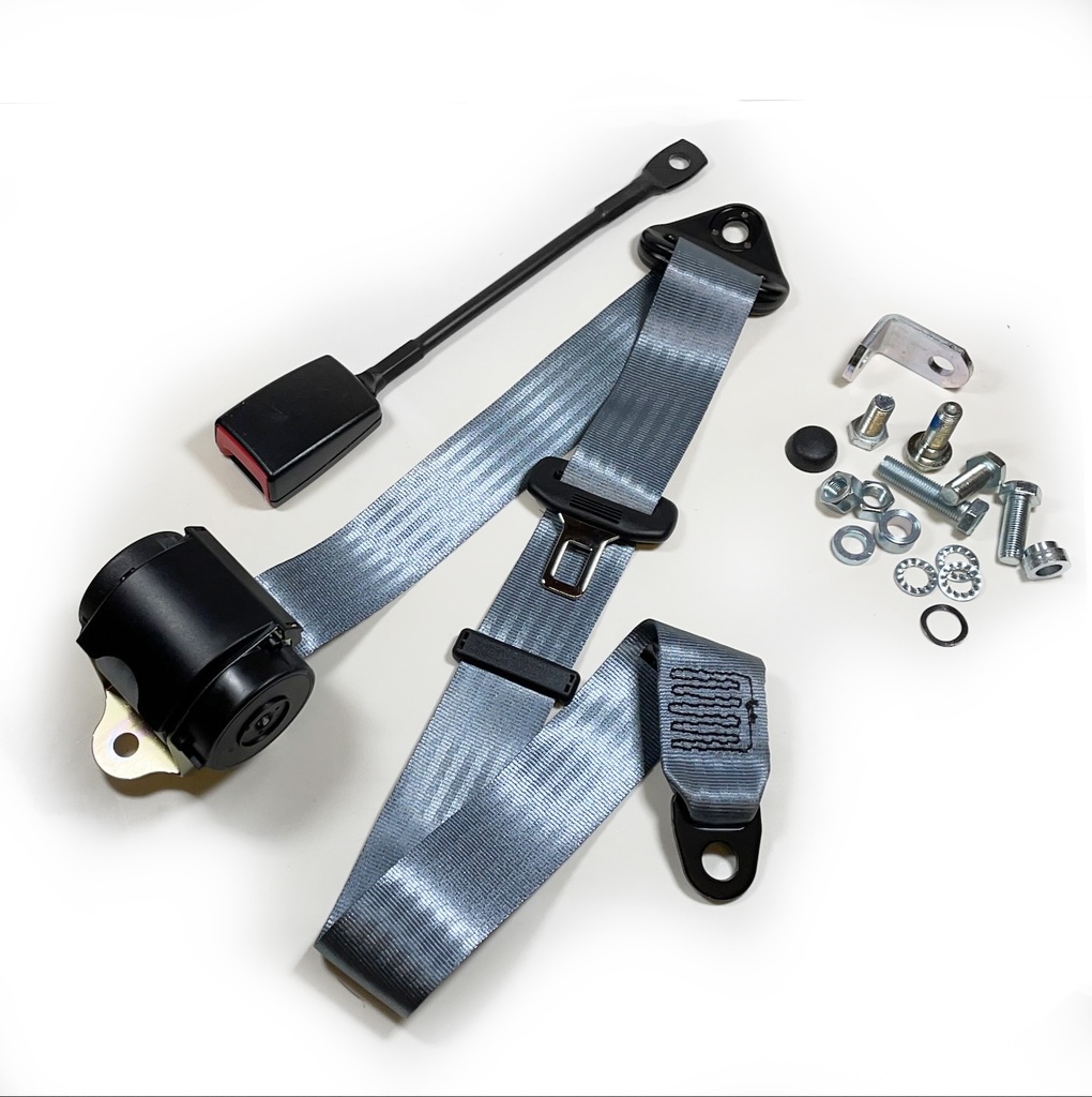 3 point inertia reel seatbelt for use in front seating positions, featuring vertical mounting retractorand wire stalk buckle, certified to the European regulation for seatbelts (UN ECE R16) and supplied with fixings and instructions required to install the seatbelt.