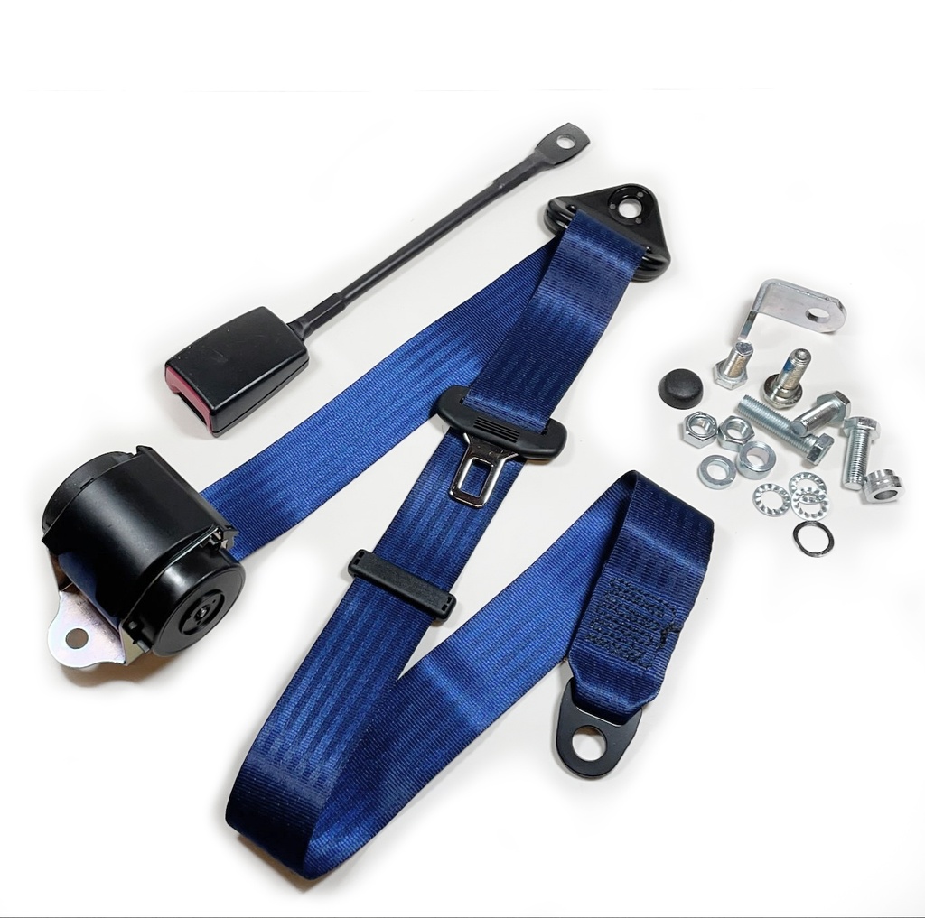 3 point inertia reel seatbelt for use in front seating positions, featuring vertical mounting retractorand wire stalk buckle, certified to the European regulation for seatbelts (UN ECE R16) and supplied with fixings and instructions required to install the seatbelt.