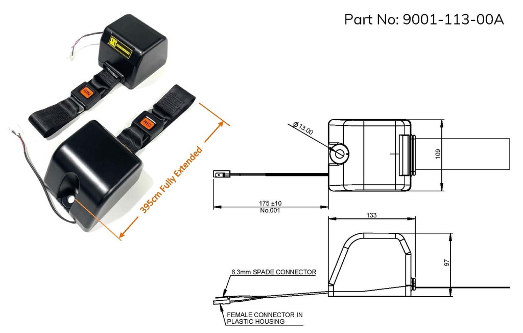 Electric Wheelchair Retractor Straps with Mini Buckle and Tongue (supplied singly, two required per vehicle).