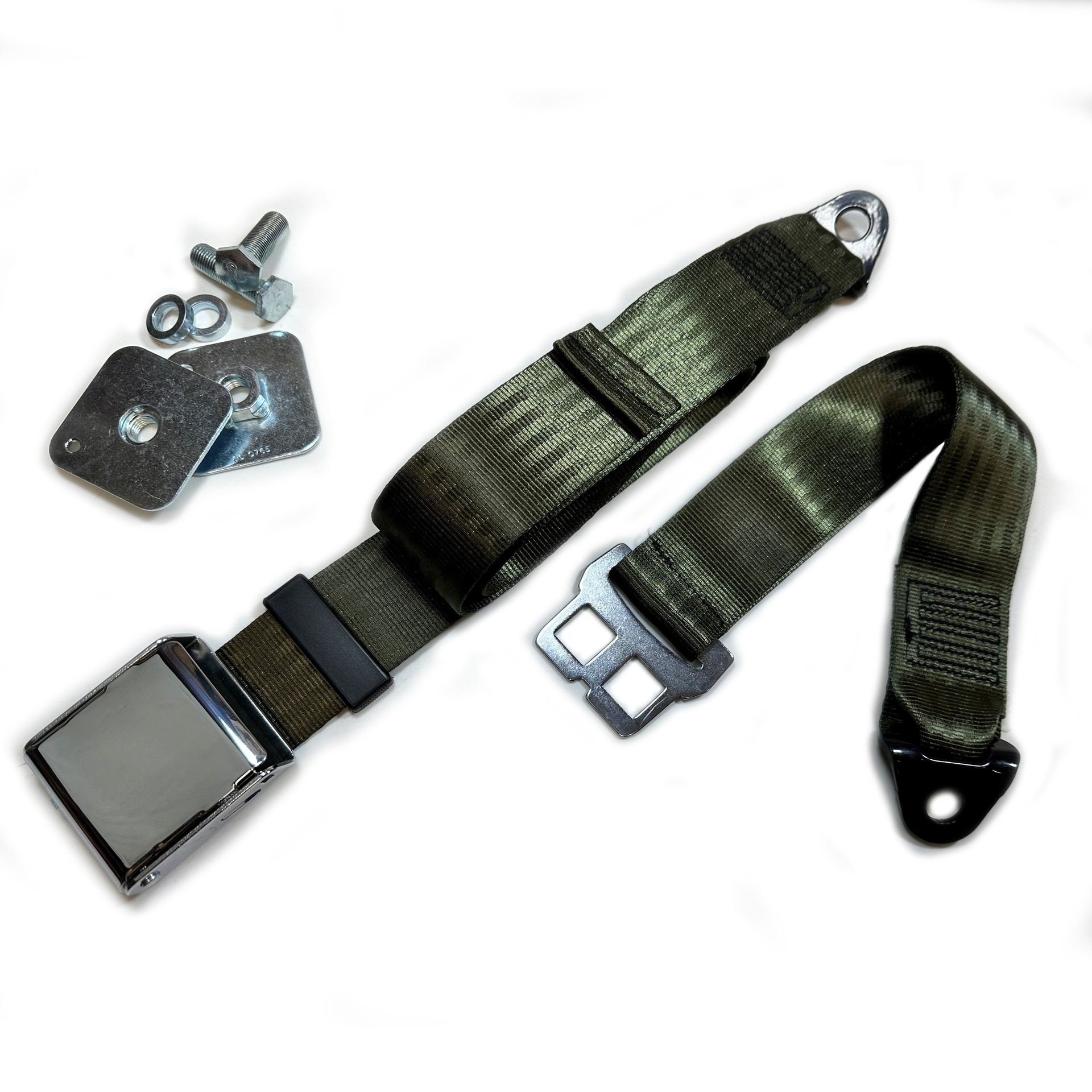 Classic Static Lap Belt with 90° Anchor Plates (OLIVE-GREEN)